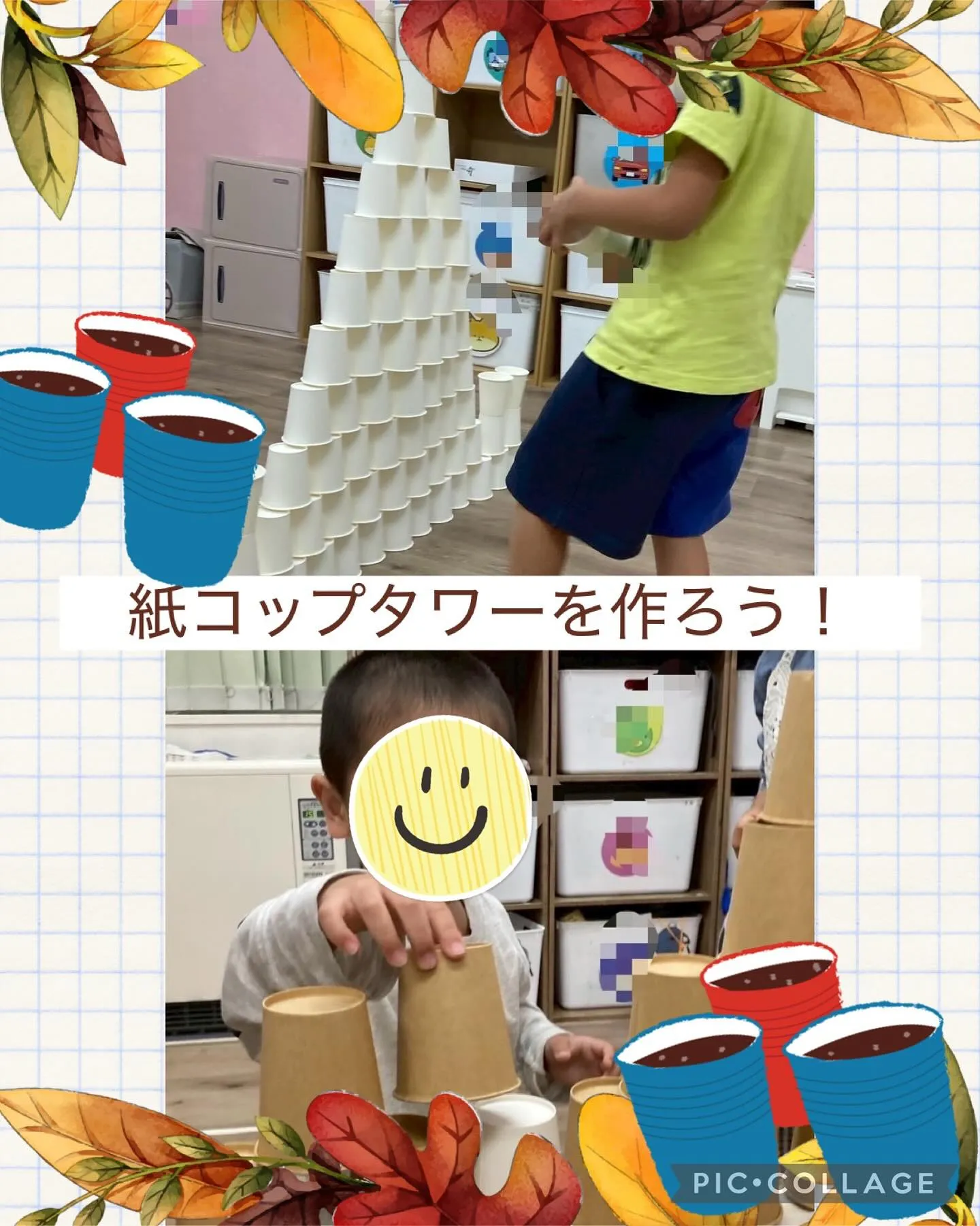 みんなは楽しくゲームとして参加しつつ、今回の紙コップタワーは手先の運動・集中力・周りを見る力・お友達との協力が必要な意外と難しいものになっています。