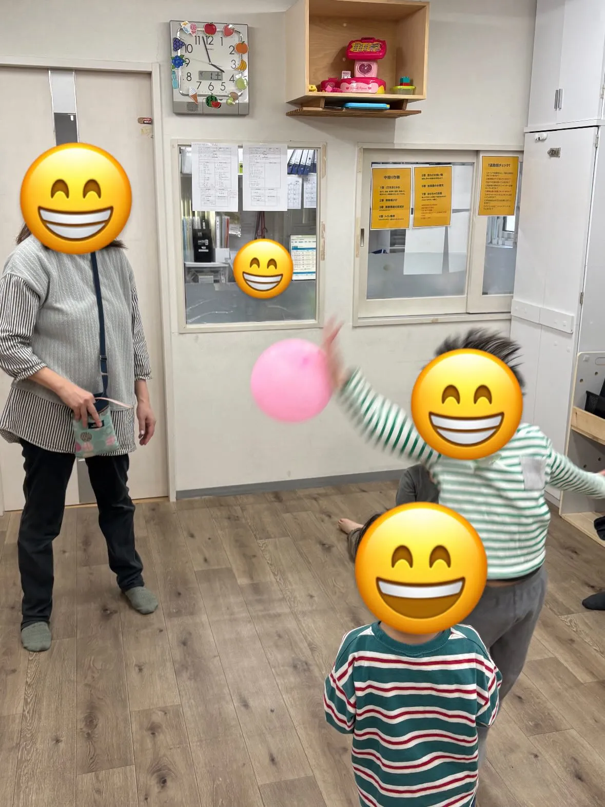 初めはみんな風船の落ちるスピードがわからずに、少し苦戦してた部分もありましたが慣れてくるとたくさん動いて、譲り合いながら風船バレーを楽しんでいました!🎈🏐